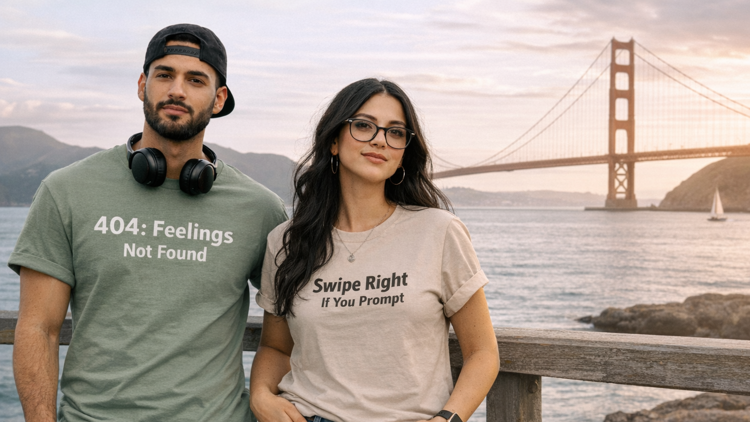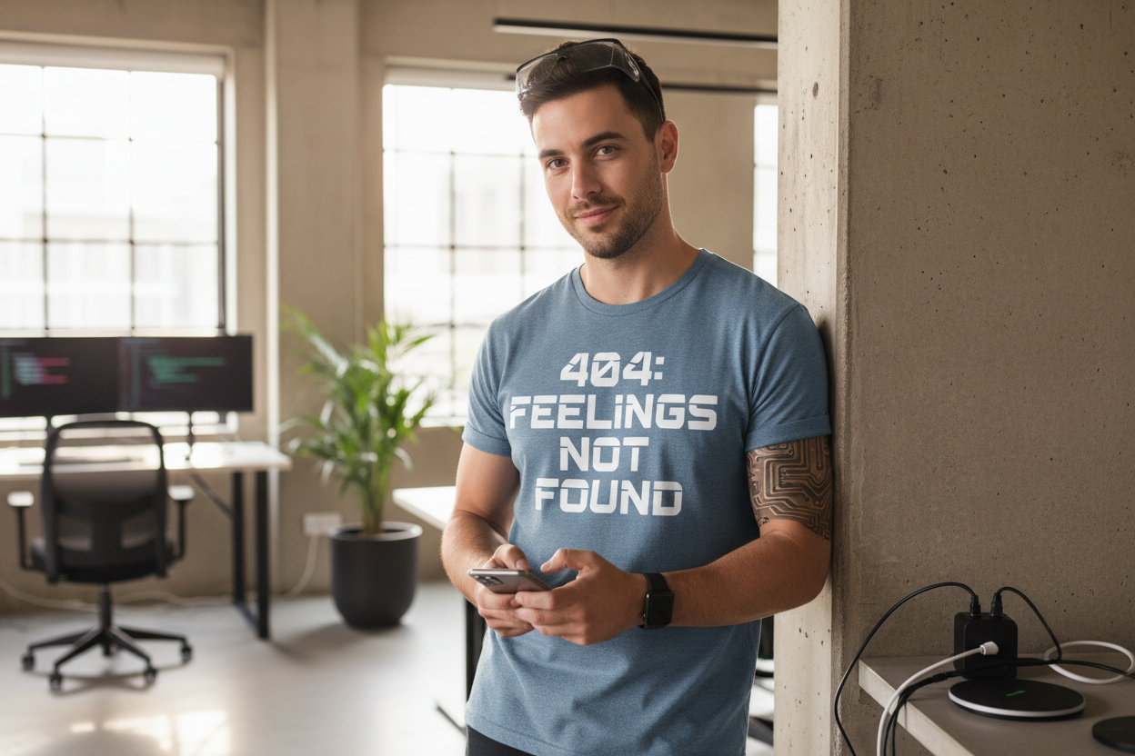 Where technology and humor intersect, each piece invites a smile and sparks conversation. Built for thinkers, flirts, innovators, and rule-breakers. Because boring outfits are a bug, not a feature.